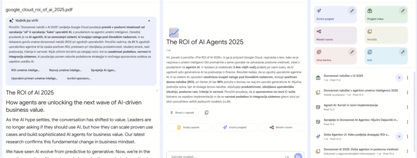 V Google NotebookLM sem naložil raziskavo The ROI of AI 2025.