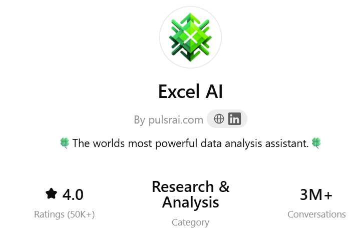 Izberite GPT z imenom AI Excel.