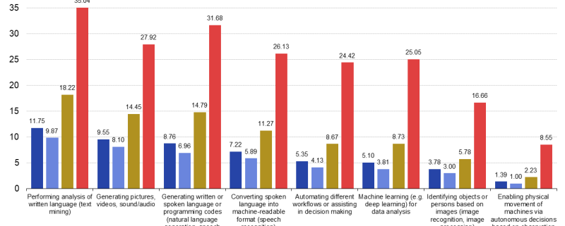 Zanimiv vpogled v področja rabe UI, po velikosti podjetij, daje Eurostat na sliki 1:
